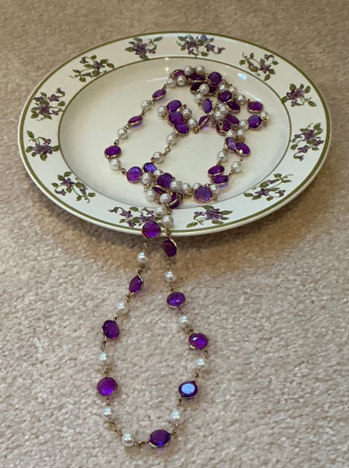 Amethyst Tone and Pearl Necklace