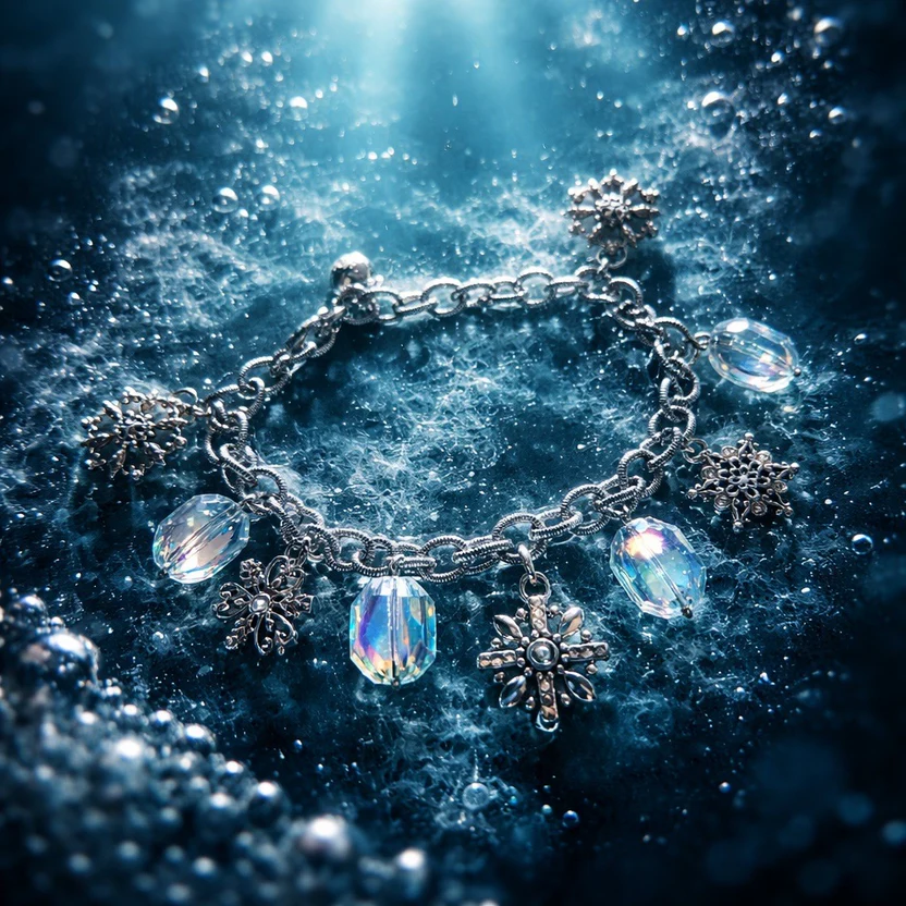 • The Charms: Five (5) artisan-crafted snowflake charms. Each snowflake is double-sided and embellished with hand-set European crystals for sparkle from every angle.