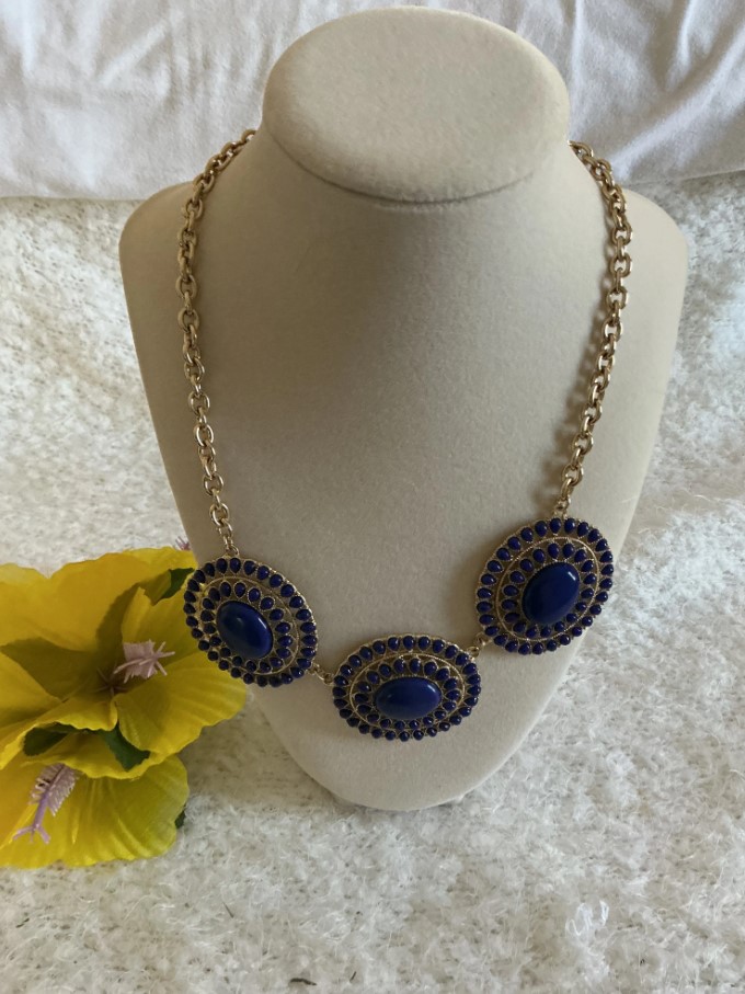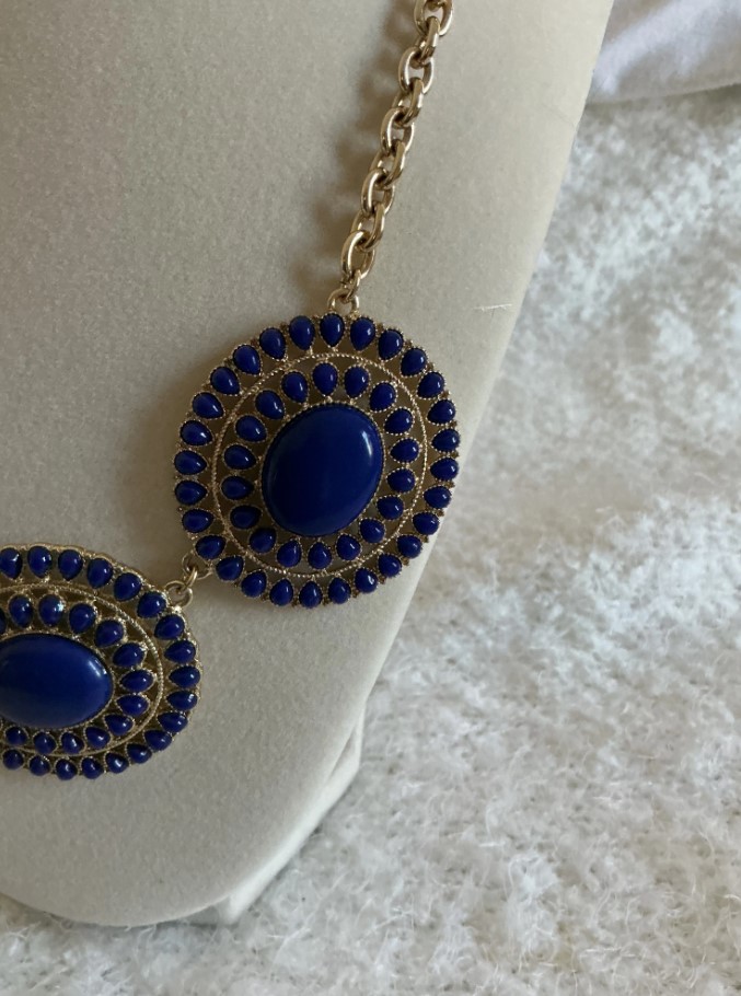 Be the first to review “CHAPS Gold Tone Blue Medallion Necklace”