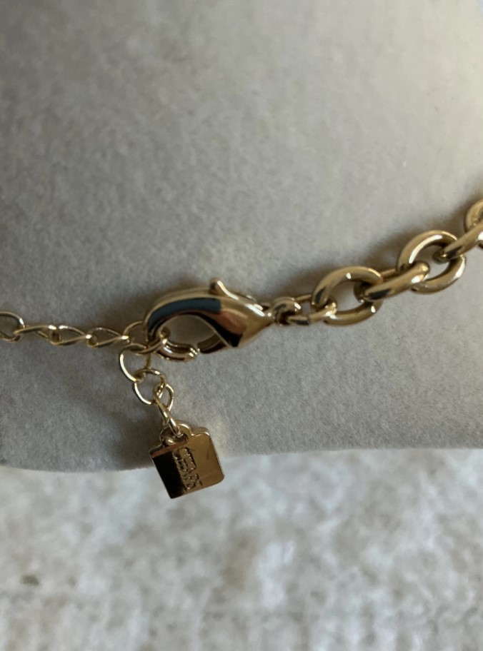 • Chain: Classic gold-tone link chain with a secure lobster clasp and adjustable extender.