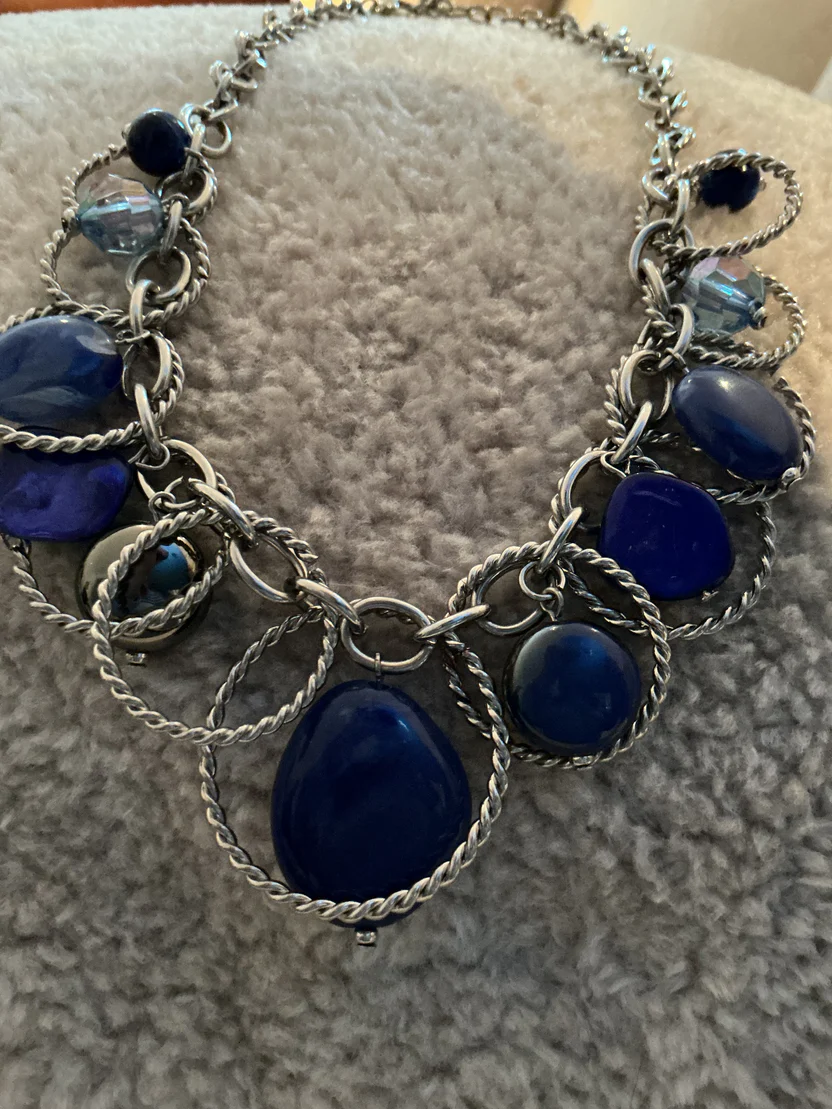 Midnight Blue Cobalt & Twisted Silver Link Statement Necklace