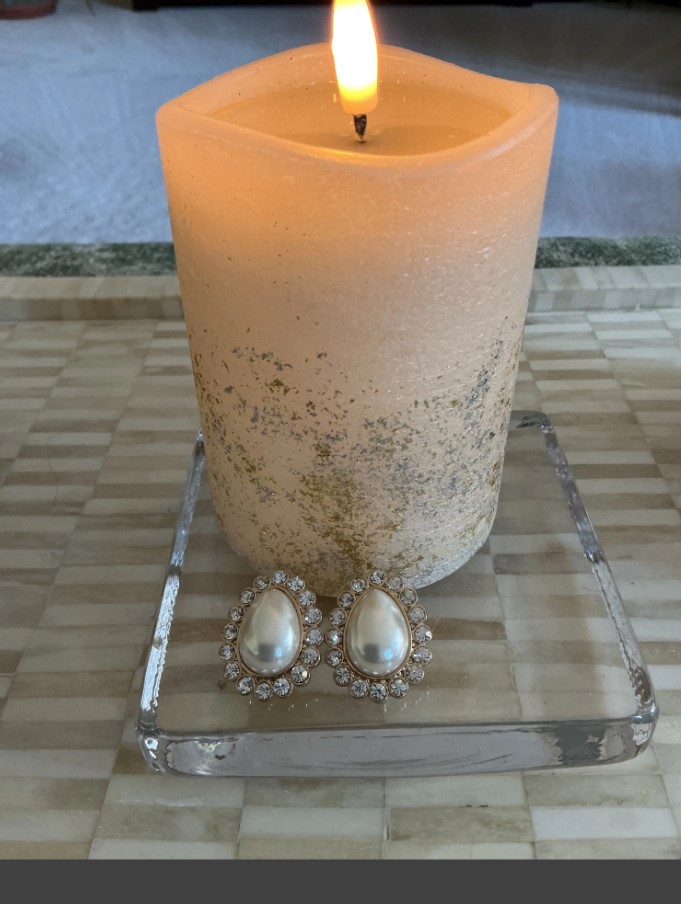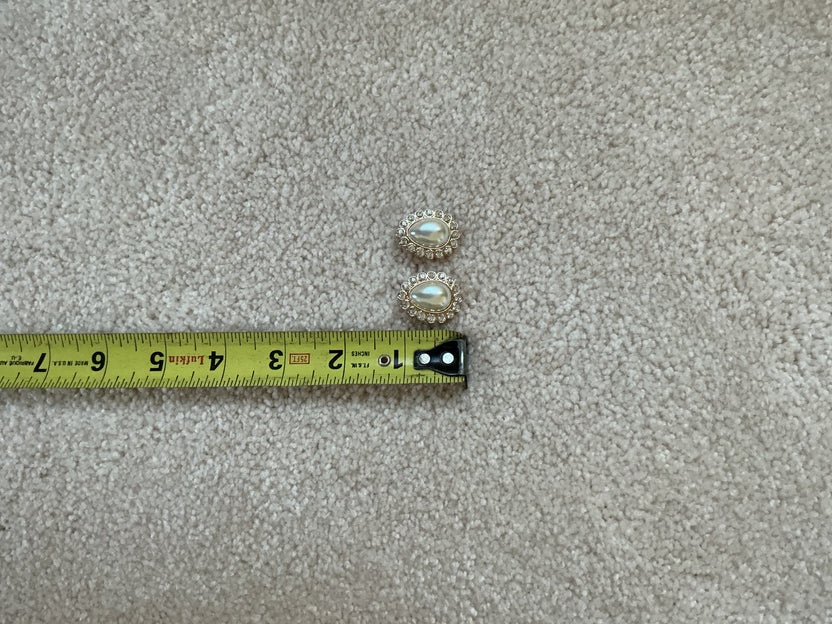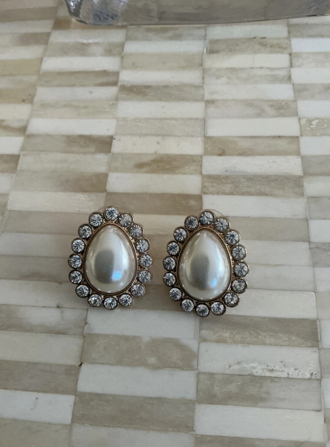 • Design: Teardrop faux pearl with a circular rhinestone border.