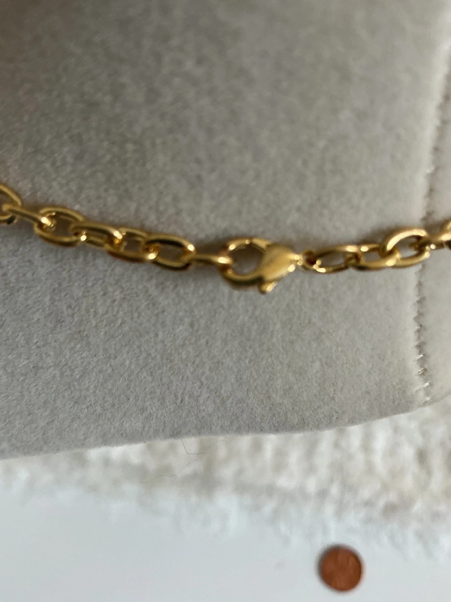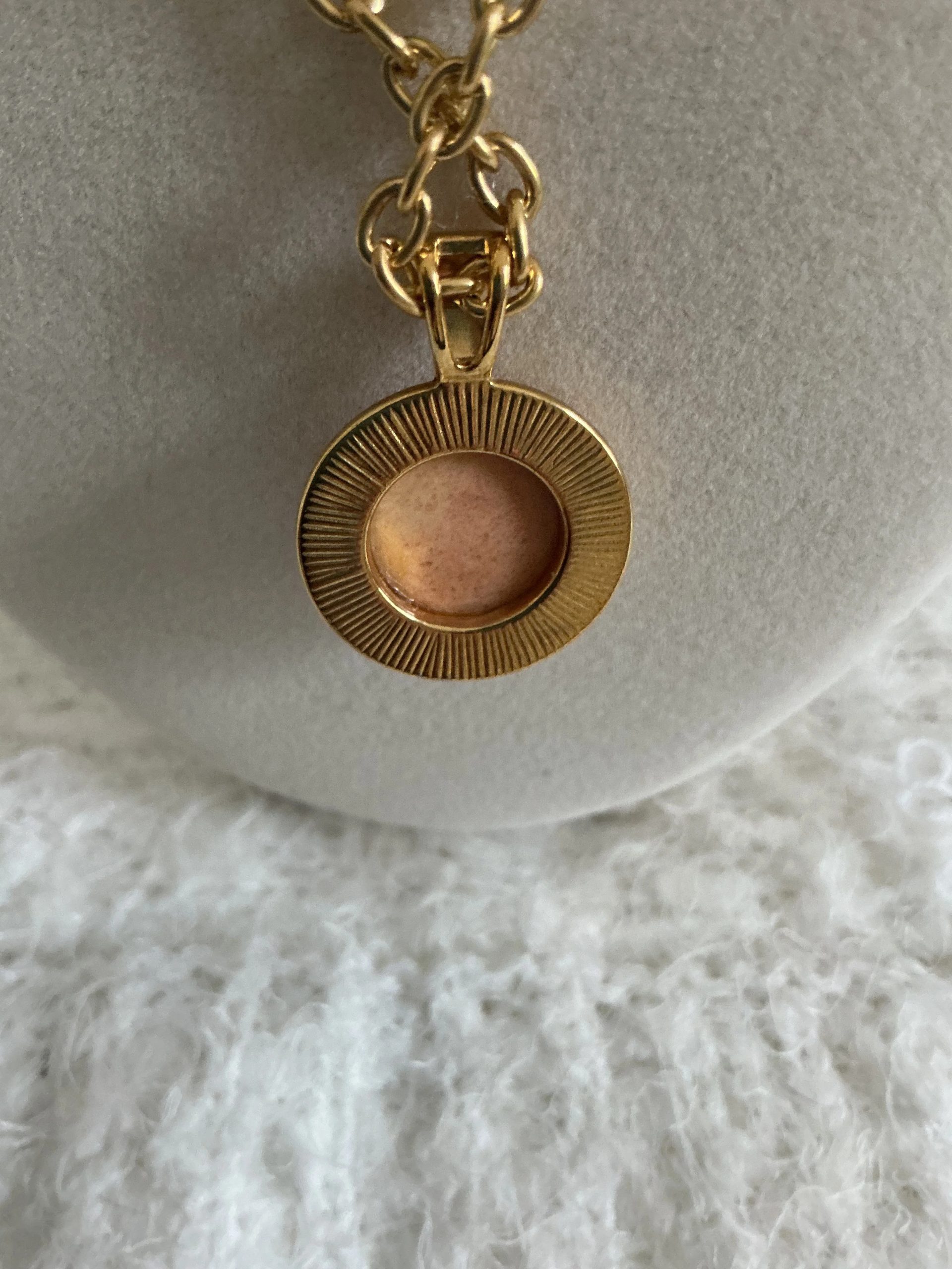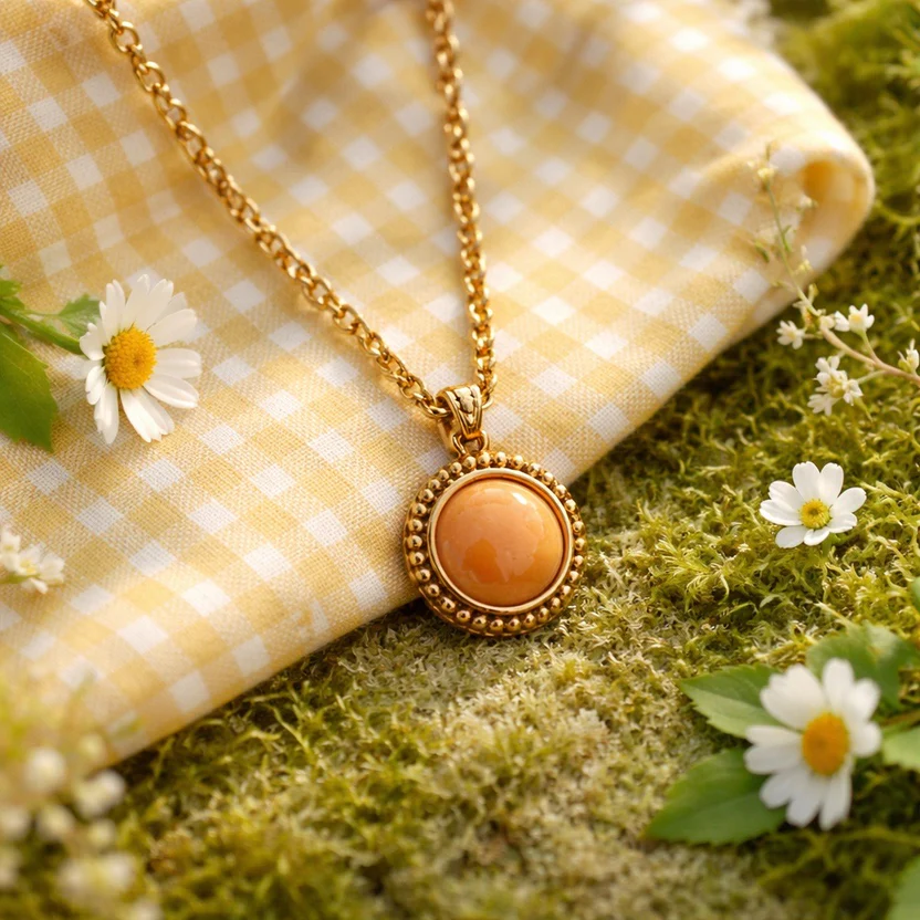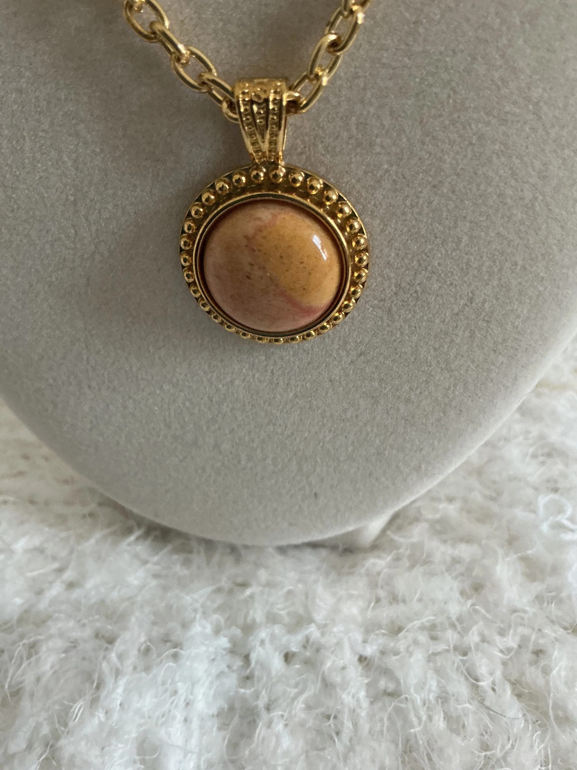 Be the first to review “Gold-Tone Beaded Edge Pendant Necklace – Polished Natural Stone Cabochon”
