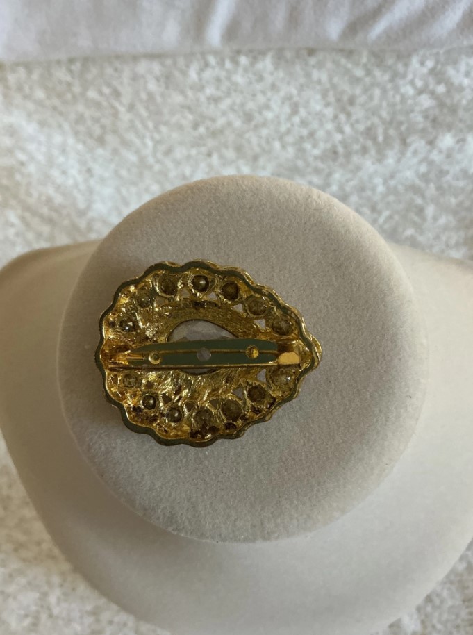 Elevate your accessory game with this elegant vintage-style teardrop brooch. This piece features a brilliant array of clear rhinestones set in a classic gold-tone frame, designed to catch the light from every angle. Its timeless pear/teardrop shape makes it a versatile addition to any wardrobe, perfect for pinning to a coat, scarf, or evening dress.