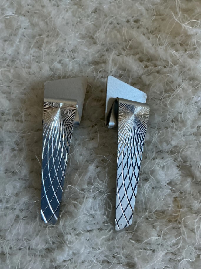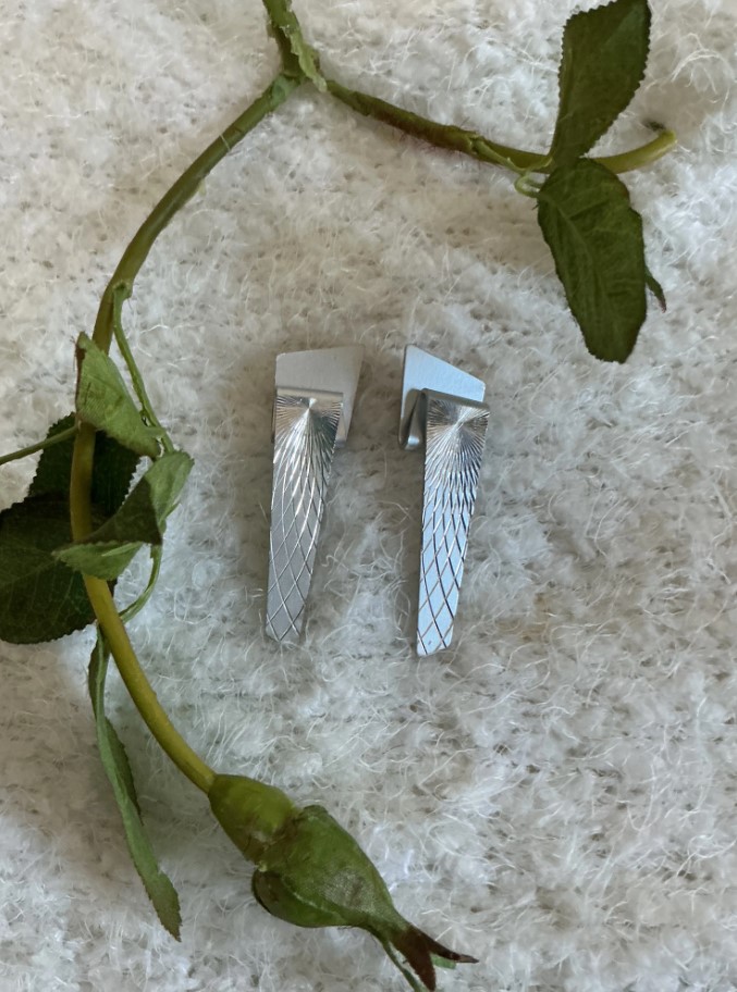 Elevate your accessory game with these striking vintage Modernist Wing Earrings. Featuring a unique folded-over geometric silhouette, these earrings combine sleek architectural lines with intricate surface details.