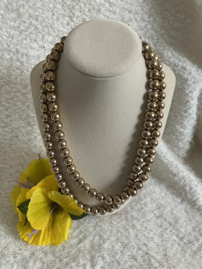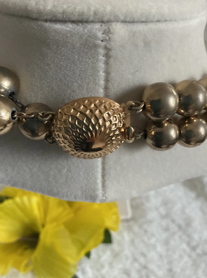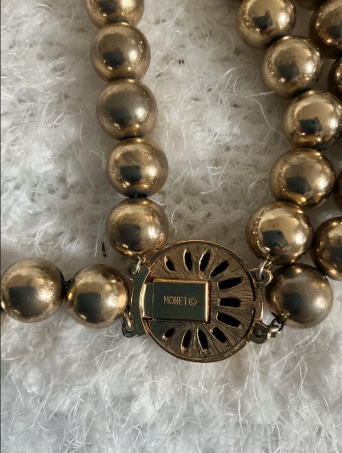 Be the first to review “Monet Gold Tone Double Strand Bead Necklace with Ornate Box Clasp”