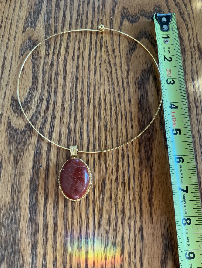 Polished Gold-Tone Omega Collar with Red Jasper Pendant