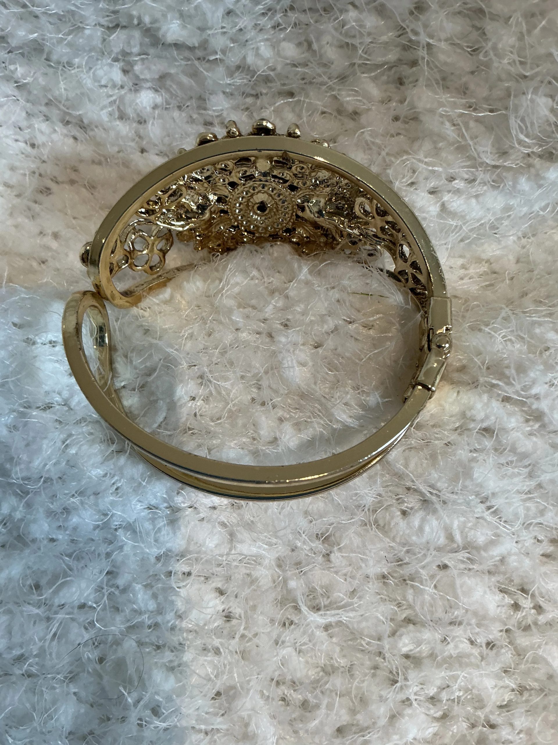 • Condition: Excellent vintage condition; the hinge and clasp are fully functional, and the gold-tone finish remains bright.