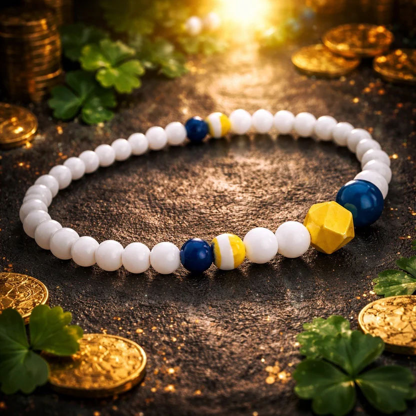• Primary Color Palette: A striking combination of matte navy blue, bright lemon yellow, and opaque white beads provides a clean, graphic look.