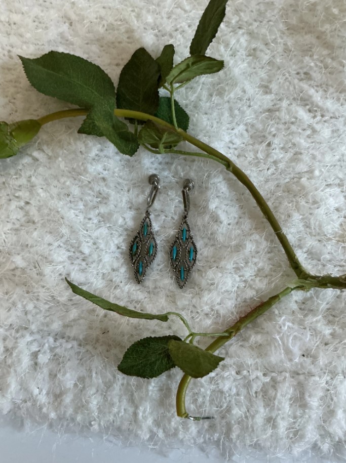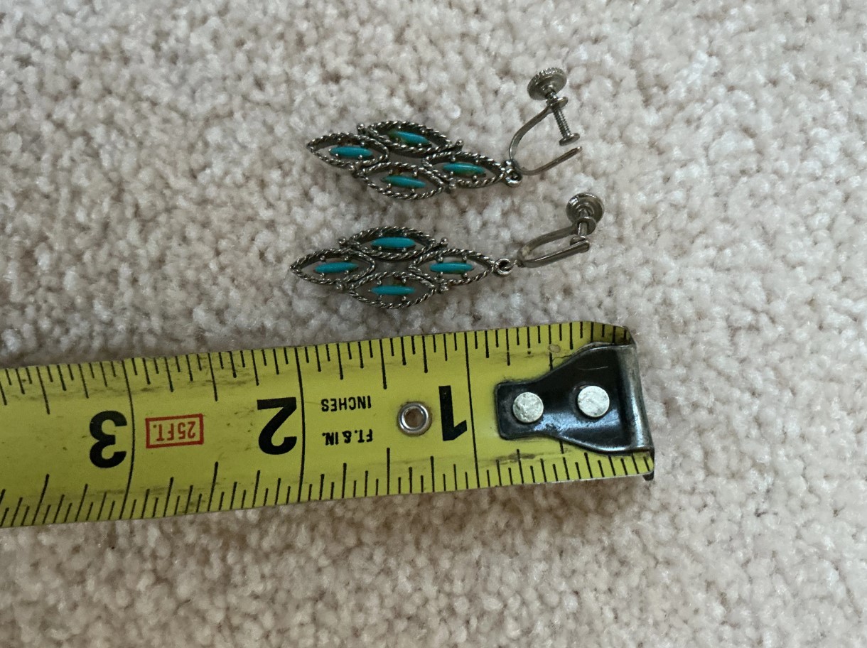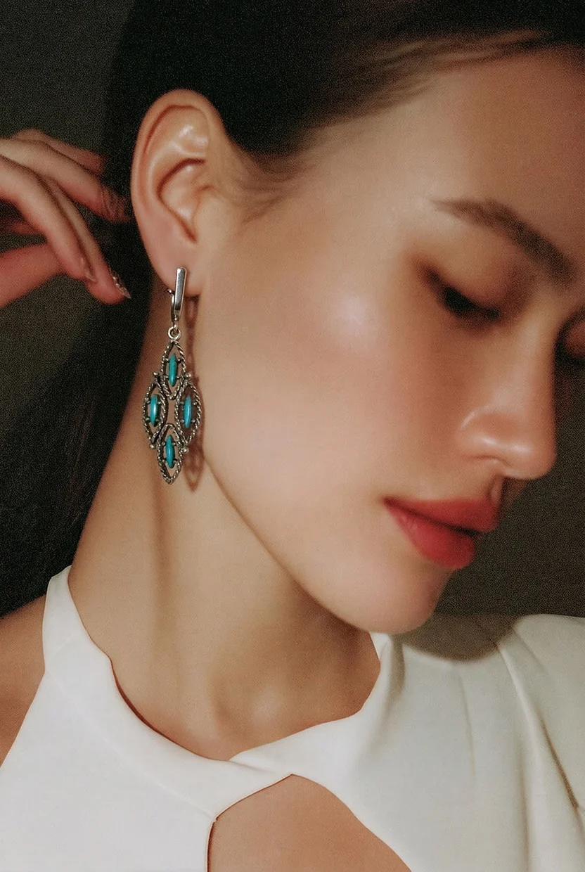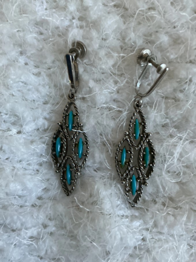 Add a splash of desert sky to your look with these elegant vintage marquise-shaped earrings. Featuring a striking turquoise-tone cabochon with subtle marbled matrixing, these earrings capture the timeless appeal of Southwestern artisan jewelry.