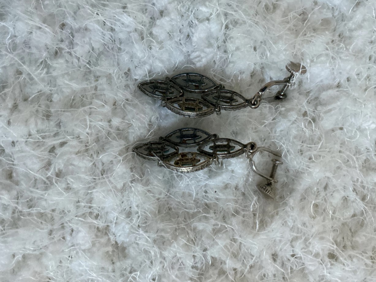 The stones are securely held in a polished silver-tone bezel, making them a perfect accessory for those who appreciate retro craftsmanship without needing pierced ears.