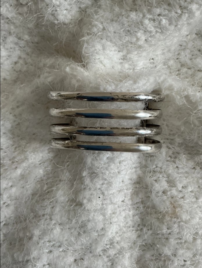 • Design: Quadruple-band “split” shank design with reinforced solid silver terminals for a secure fit.