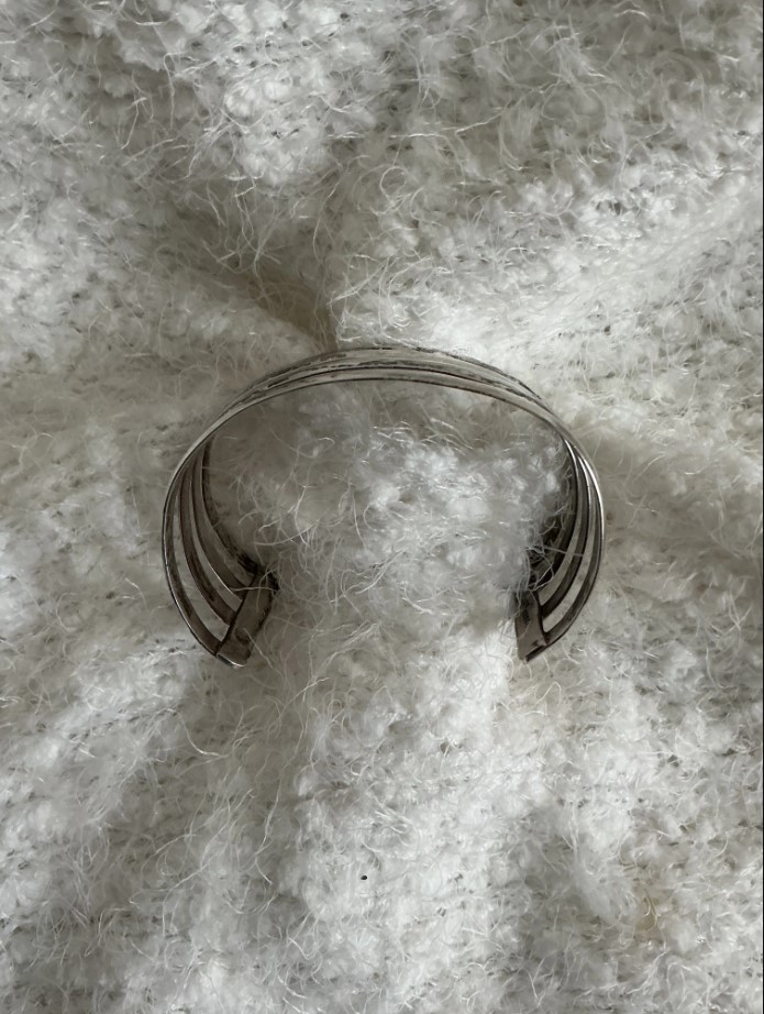 This sleek and sophisticated cuff bracelet features four parallel sterling silver bands that create a bold, airy aesthetic. The high-polish finish reflects light beautifully, while the open-back design allows for slight adjustability to fit most wrist sizes. It is a versatile piece that transitions perfectly from casual daywear to an elegant evening accessory.