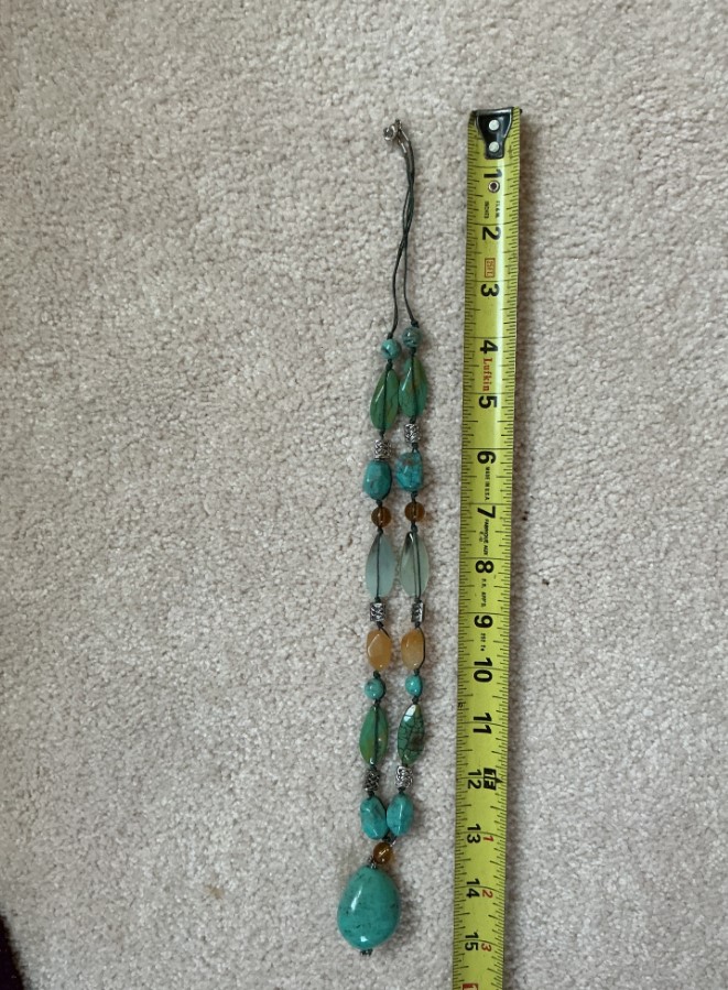 • Size: The total length is approximately 15 to 16 inches when laid flat (measured to the end of the pendant).